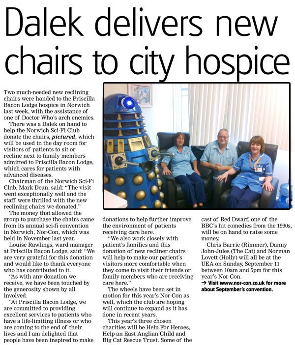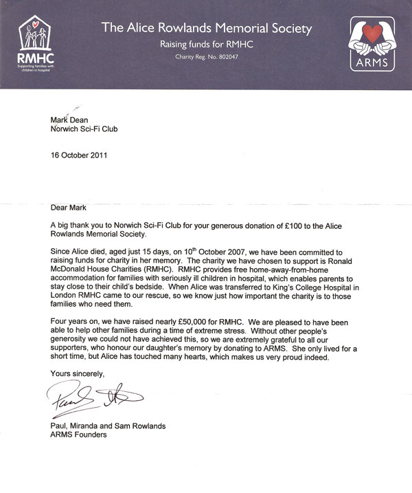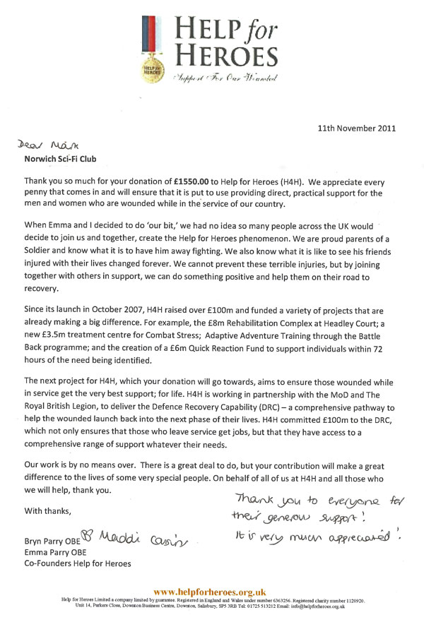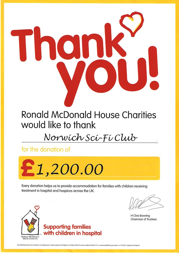 To the Norwich Sci Fi Club, it was an absolute pleasure to attend your convention in Norwich.