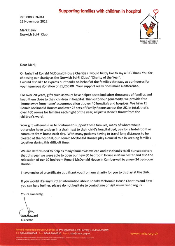 | Ronald McDonald House Charity - Donation from the NSFC |
