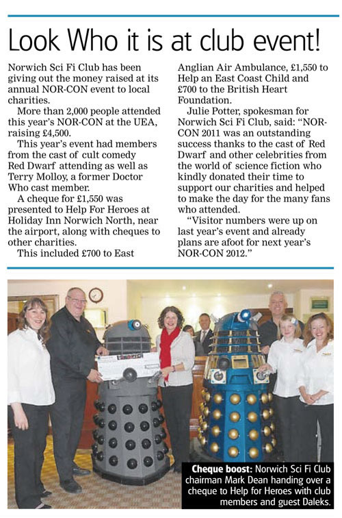 A big thank you also to the kindness and generosity of the many people who donated towards these charities and who also attended NOR-CON 2011.