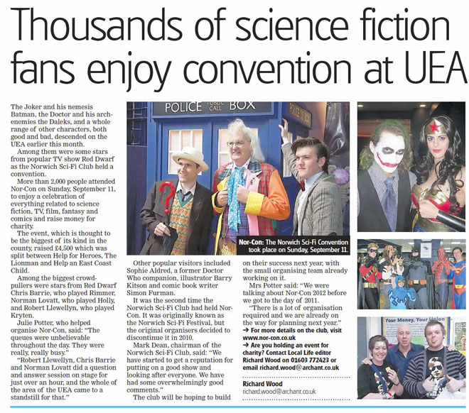 See the Norwich Sci-Fi Club out and about in the remainder of 2011 and in 2012. Thank you all once again. |